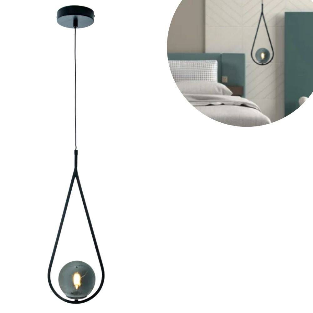 O pendente Pingo é uma peça de design elegante e sofisticado, que combina metal e vidro em sua estrutura. O pendente tem um formato de gota, com uma estrutura preta que envolve um vidro na cor fume. Ele é ideal para iluminar e decorar ambientes como salas de jantar, quartos ou hall de entrada, trazendo um toque de charme e requinte.